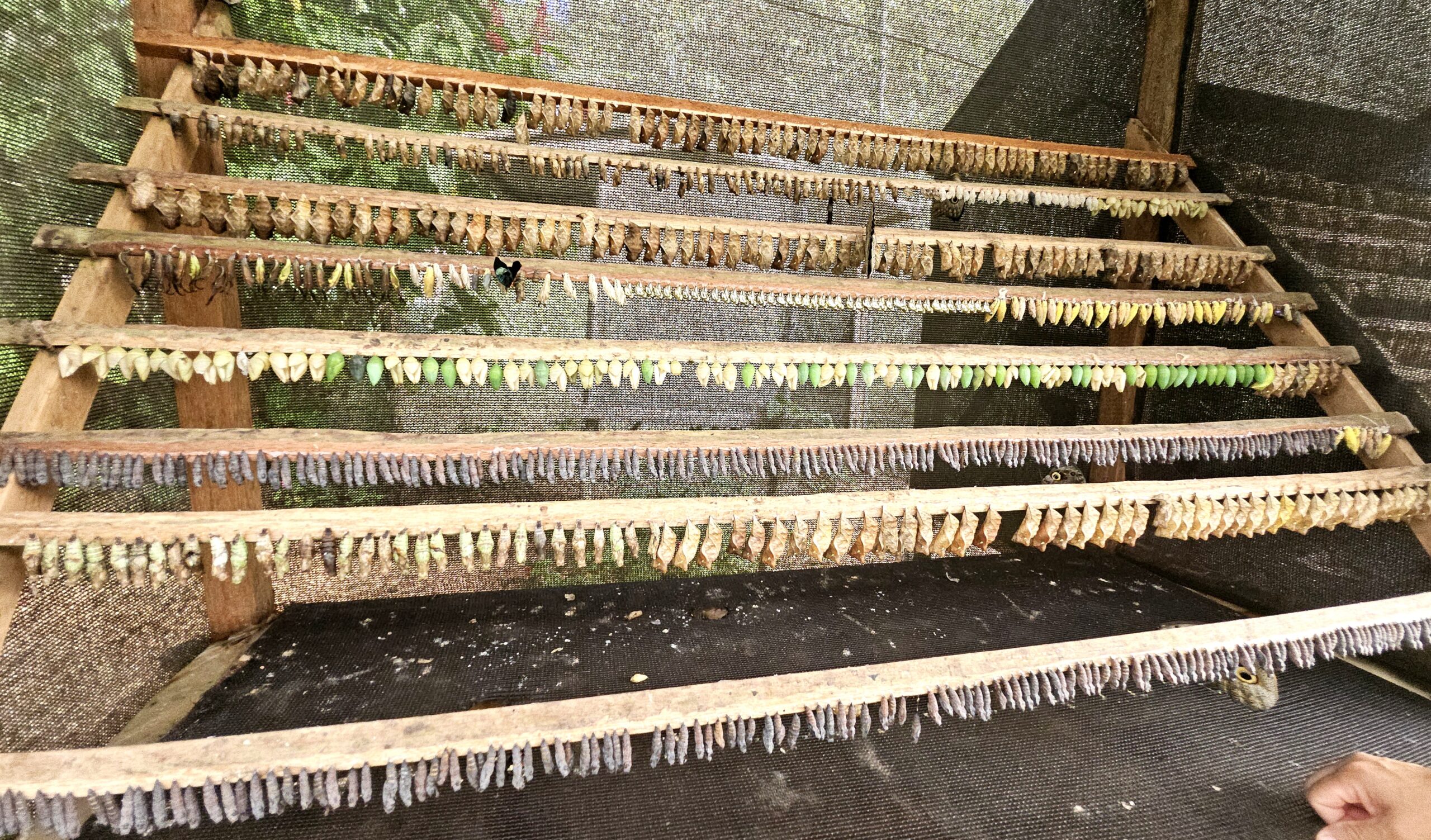 Also close to where we stayed is The Cacao Farm, a wonderful place to experience local preparations of chocolate. The beans are harvested from the pod; the seeds are dried in the pan and ground into a chocolate paste. The chocolate and fresh fruit fondue they served us there tastes delectable. There is also a scenic butterfly farm with some of the most exotic and beautiful butterflies I have ever seen! You can see them from a sheltered chrysalis form through mature butterfly.