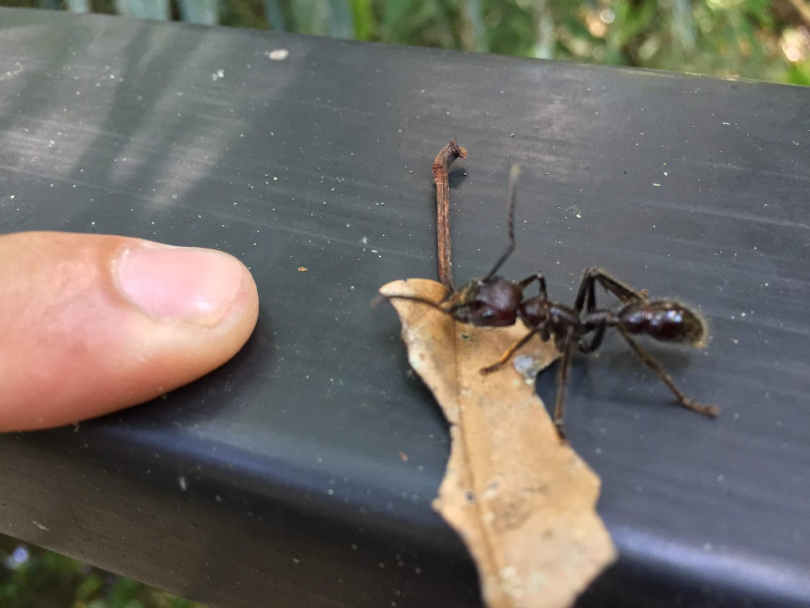 The Yasuni Bioshere Reserve has some diverse plants, fish (including piranhas, which are not quite as terrifiying as in popular lore), mammals (monkeys and jaguars) reptiles (anacondas and iguanas) and many types of insects. Many more than you can ever imagine! One of those insects is the bullet ant, which has a very painful bite, whose effects last 24 hours. The bullet ant is large, but not the largest in the Amazon. You have to go downstream into Brazil to see the really big ones (dinoponera gigantea). The Yasuni National park is a long boat ride from the lodge where we stayed but we will definitely visit it the next time we are here. It is well worth the journey.